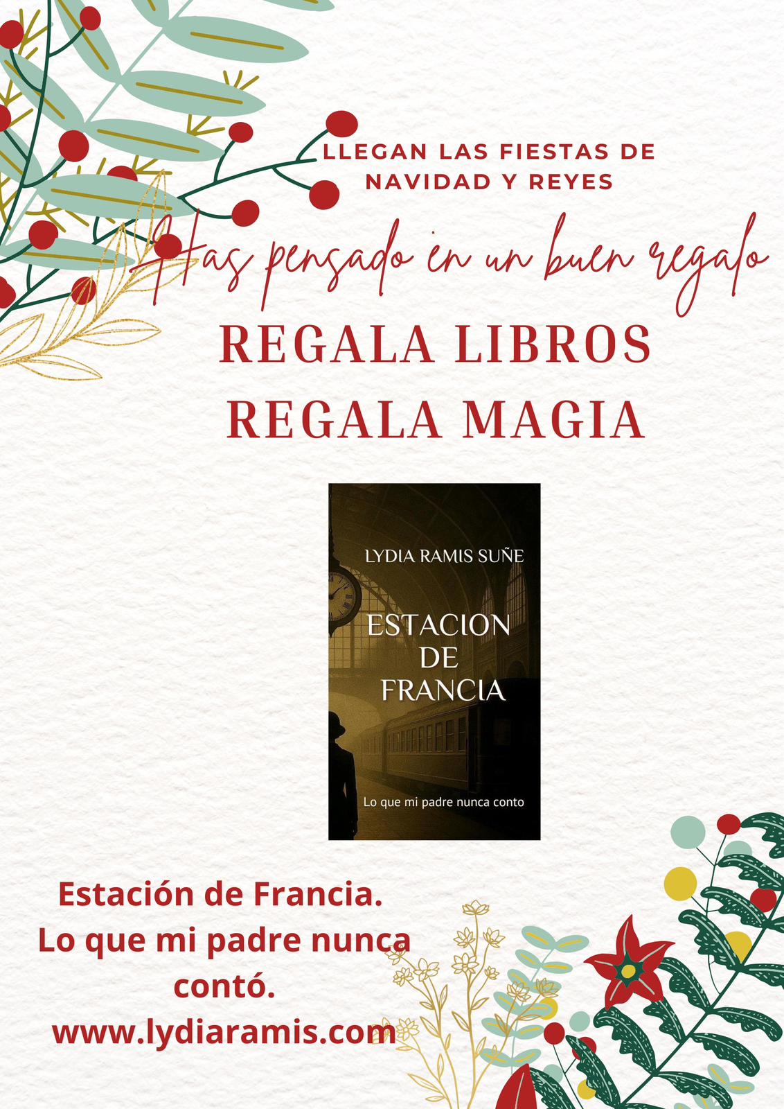 Estas Navidades descubre Estación de Francia. Lo que mi padre nunca contó, la emocionante historia real que desvela un pasado silenciado durante la Segunda Guerra Mundial. Un libro cercano, conmovedor y lleno de suspense histórico. Ya a la venta en Amazon y en librerías. Yo misma te dejaré los enlaces directos para su compra.